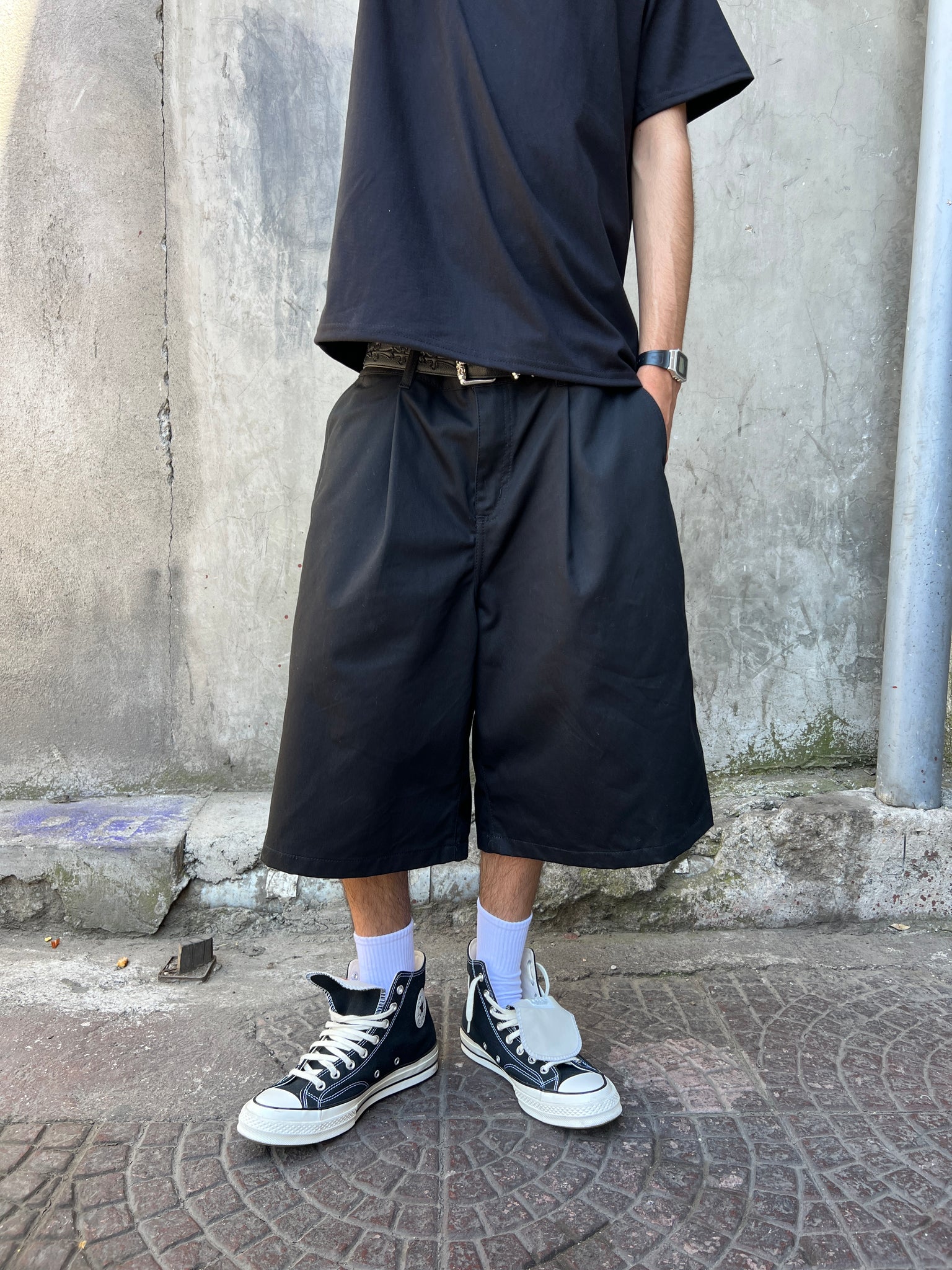 Shorts de gabardina de 9oz, fit Balloon con bordado en el bolsillo trasero.